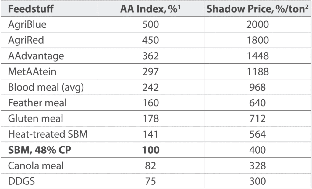Table 1. Amino acid (AA) index and shadow price for various high-protein feedstuffs.